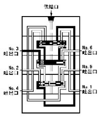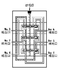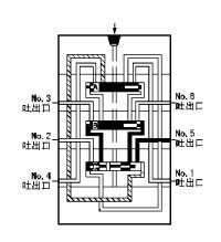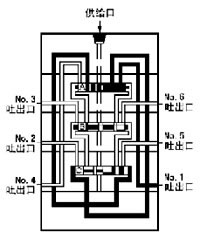 6、流入的潤滑劑推動活塞B向右運動、右腔的潤滑劑壓向NO.5吐出口,經(jīng)外部配管送向潤滑點。當(dāng)活塞B移動到至右極限時活塞A左腔開始進入潤滑劑。