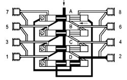 一、使用條件 SSV系列單線遞進式分配器適用于公稱壓力為30MPa以下的單機或小型干稀油單線集中潤滑系統(tǒng)中。它靠殼體內部的活塞將由入口輸入的潤滑劑以預定的量可靠地和強制性地分配。該型分配器左右兩側均有吐出油口,不同吐出口數(shù)的安裝尺寸相同,吐出口派生合并增大給油量與手動、氣動或電動潤滑泵相連接可組成簡單,費用低廉的小型集中潤滑系統(tǒng),也可與大型集中潤滑系統(tǒng)中的單線或雙線分配器連接作為輔助分配器進行二級分配。